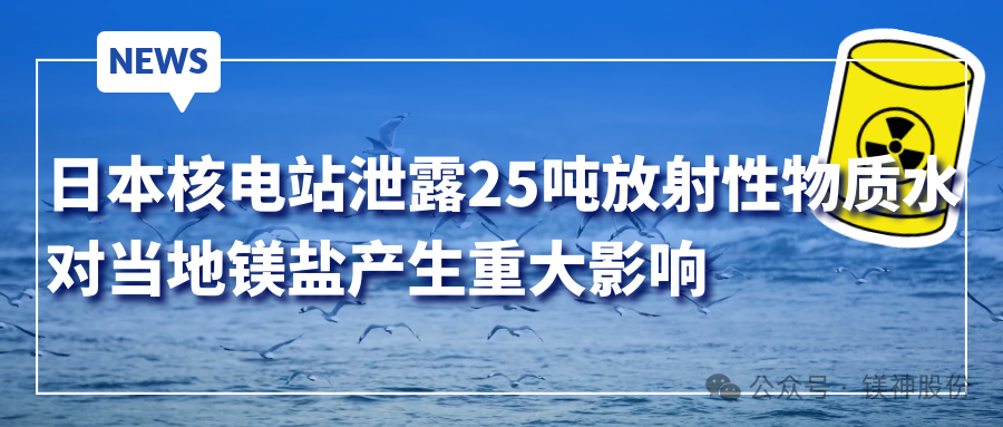 8月14日,日本东京电力公司报道称福岛核电站的储水罐发生泄漏,25吨放射性物质的水漏出。引起了全球的关注和讨论。这一事件不仅对海洋生态造成了潜在的影响,还可能影响到从海水中提取的镁盐产品。