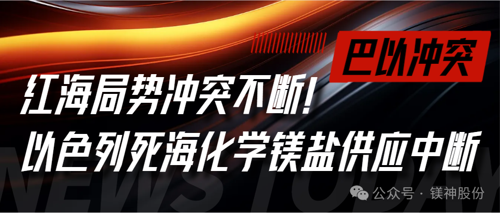 可靠消息,也门胡塞武装发言人叶海亚·萨雷亚当地时间27日称,胡塞武装对美国海军部署在红海的2艘驱逐舰发动了无人机袭击,并准确击中目标,红海紧张局势再度升级。且胡塞武装发言人叶海亚·萨雷亚之前也宣布向所有向以色列输送货物的船只发起袭击。受此影响,死海化学溴业有限公司(dead sea bromine company ltd)镁盐生产中断、产品运输成本暴涨,给全球镁盐供应链带来不良影响。